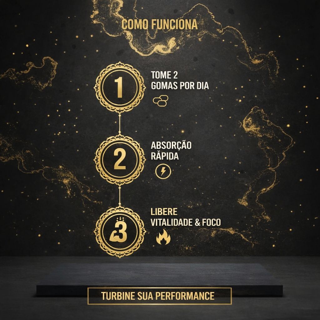 Tome duas gomas por dia, de preferência com alimentos, para favorecer a absorção e a eficácia. Recomenda-se o uso diário e consistente para melhores resultados.